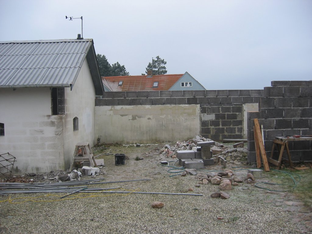 Selve byggeriet startede i 2002. Murene blev bygget oven på den