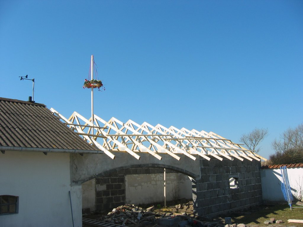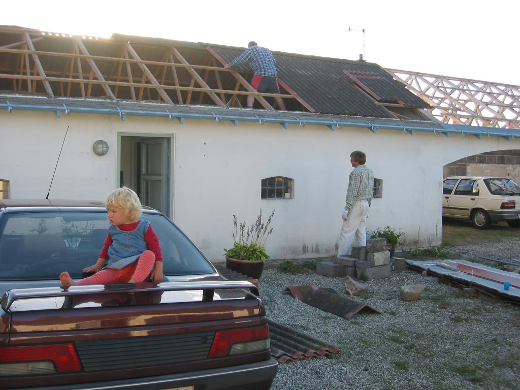 kom og hjalp. Vi havde valgt et ståltag, da alle spær på
